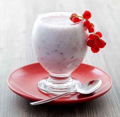 frischer Johannisbeersmoothie im Glas dekoriert / fresh currant smoothie in a glass